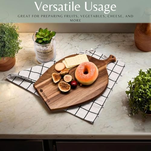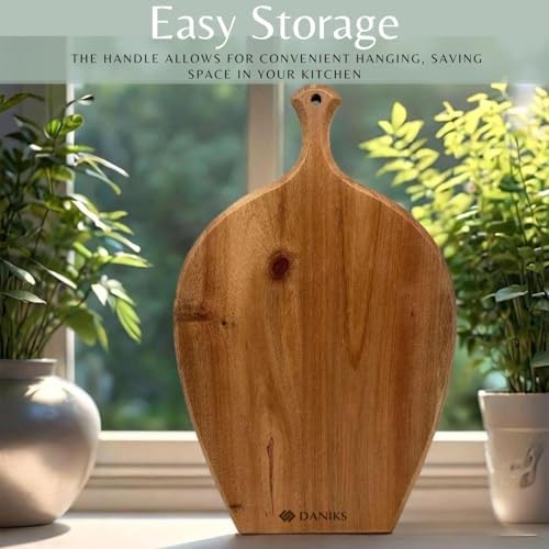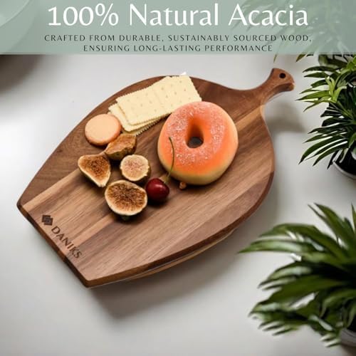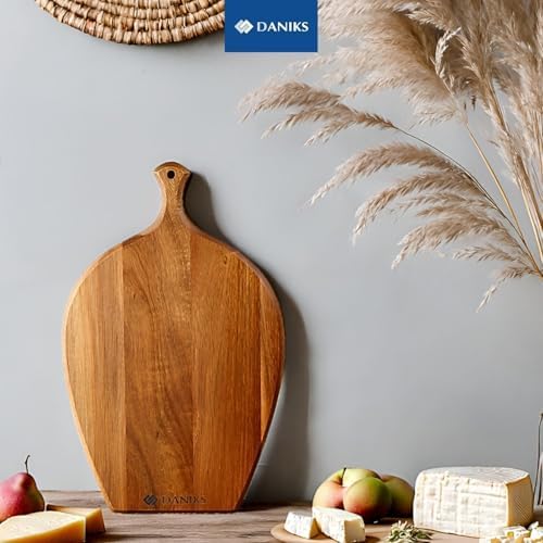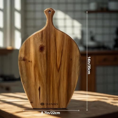 Daniks 100% Natural Acacia Wood Cutting Board 14x9\u201D \u2013 Extra Thick, Heavy Duty Wooden Chopping Board for Kitchen & Serving \u2013 Perfect for Fruits, Vegetables, Meat, and Bread \u2013 BP