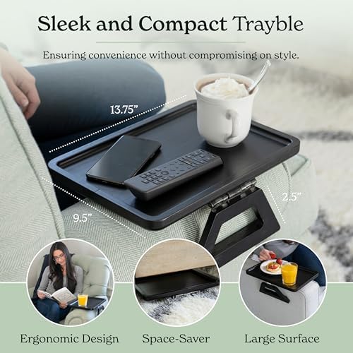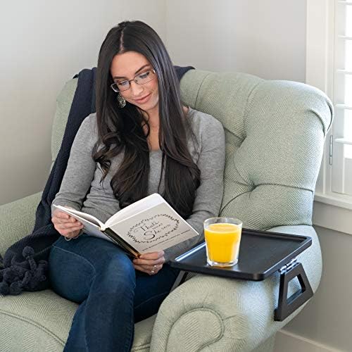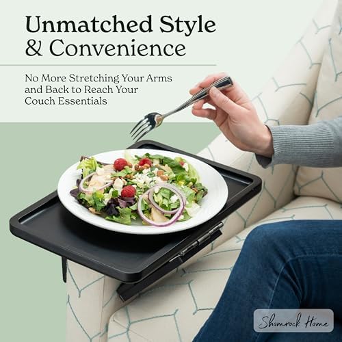 Shamrock Home bamboo tray sofa arm table, clip on sofa table, suitable for sofas. Sofa arm tray suitable for TV dinner, remote control, drinks, snacks, and small spaces -13.75 x 9.5 inches, black