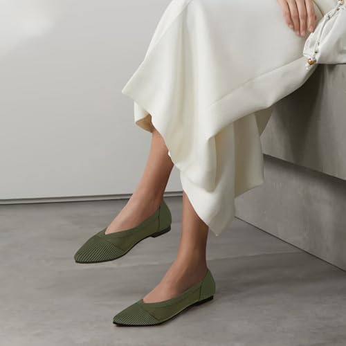 TINGRISE Women's Flats Shoes Pointed Toe Knit Ballet Comfortable Dressy Mesh Flat