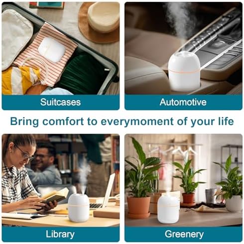 Portable Small Humidifier, USB Personal Desktop Humidifier for Car, Office Room, Bedroom, Auto Shut-Off, 2 Mist Modes, Super Quiet(220ml, White)