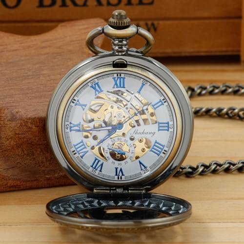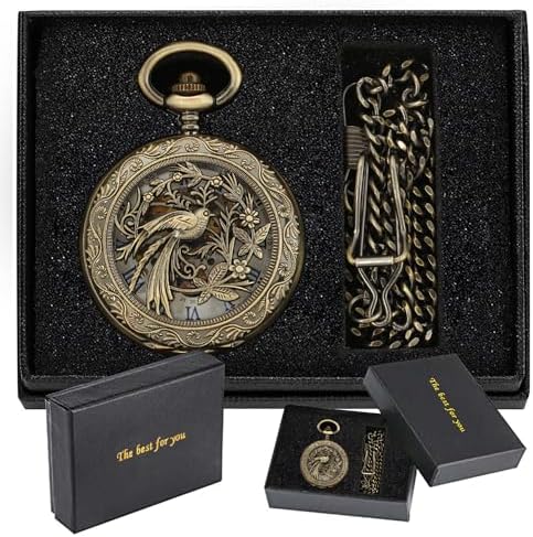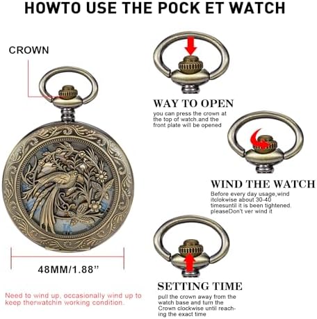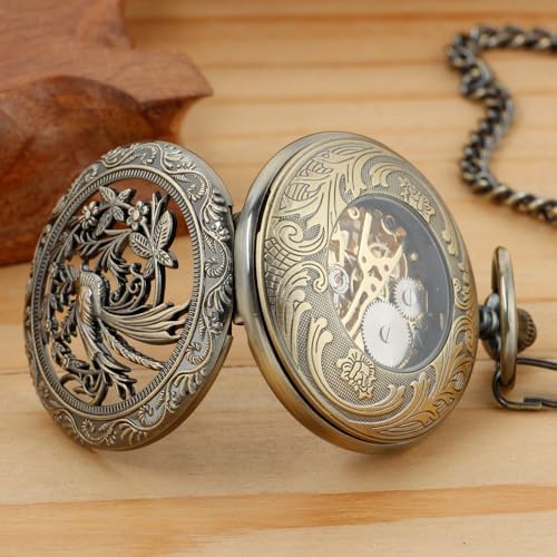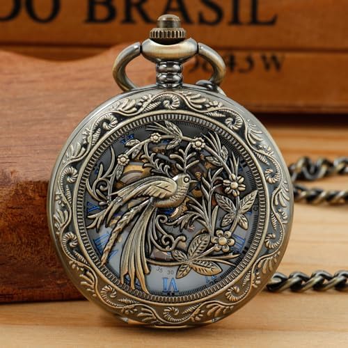 Tiong Bronze Single Opening Eagle Design Mechanical Pocket Watch, Men's Mechanical Movement Roman Digital Dial Pocket Watch
