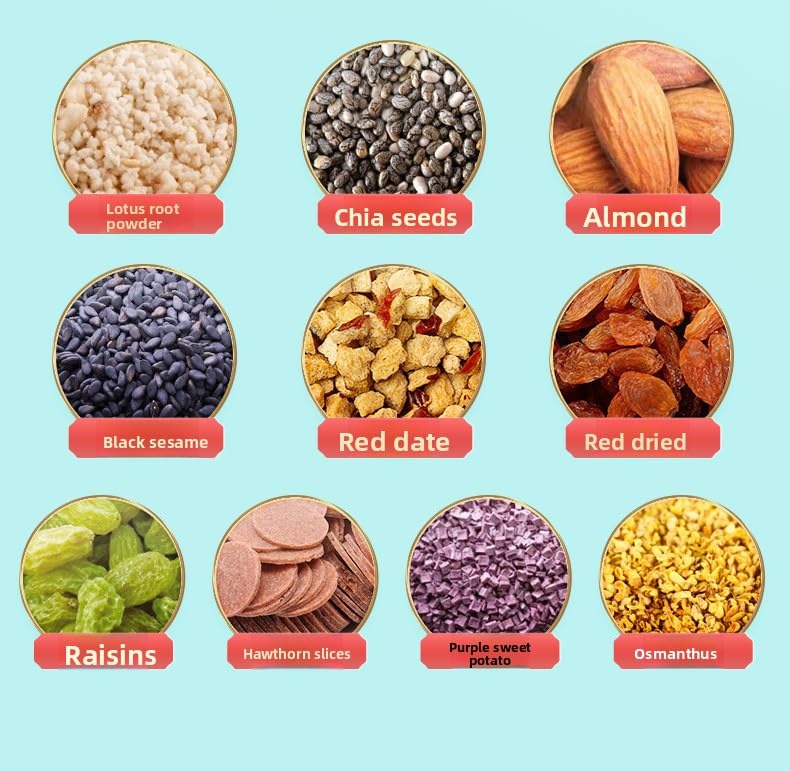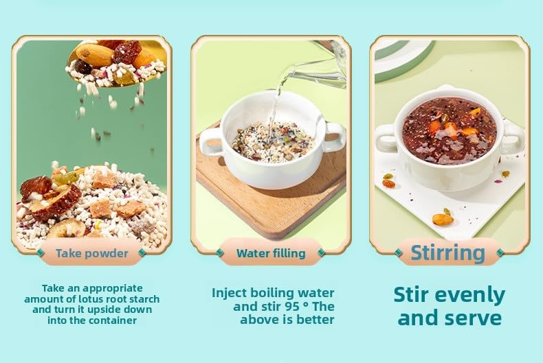 Lotus Root Powder,Low-Calorie Instant Breakfast Powder,Includes:Lotus Root Starch, Chia Seeds, Red Dates, Raisins, Dried Hawthorn, Purple Sweet Potato, Osmanthus, Black Sesame Lotus Root Powder Soup