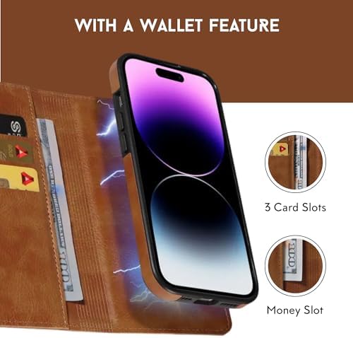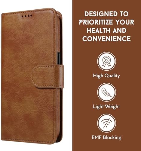 RadEnergy EMF Protection Anti Radiation iPhone Leather Flip Folio Case for i-Phone, Genuine Leather Wallet Case\/Cover with Card Holder & Stand Function (Brown, i-Phone 12 Pro Max)