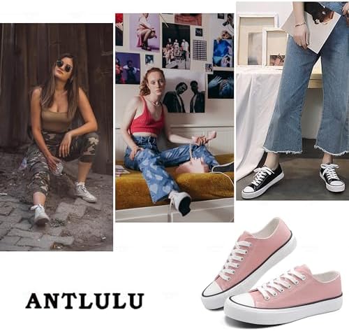 ANTLULU Womens Canvas Shoes Low Top and Lace up Fashion Casual Sneakers Black and White Classic
