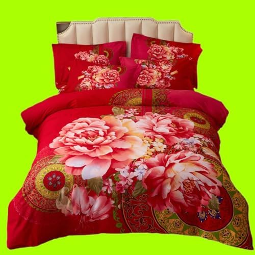 JUxiangW9 New Chinese Ethnic Style Cotton Thickened Woolen 4Piece Quilt Cover Set Four Piece Set. 8m Bed Double Pure Cotton Comfort Cover Set, Bedding Set. 0