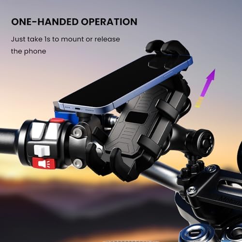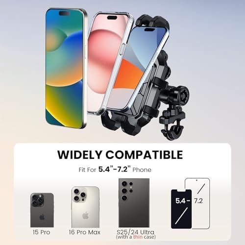 Thlevel Motorcycle Phone Mount Holder with Vibration Dampener Anti-Shake 720° Adjustable for iPhone 16 Pro Max for Samsung 5.4''-7.2'' Phone Anti-Theft Dirt Bikes(U Shape Base 0.5-1.26