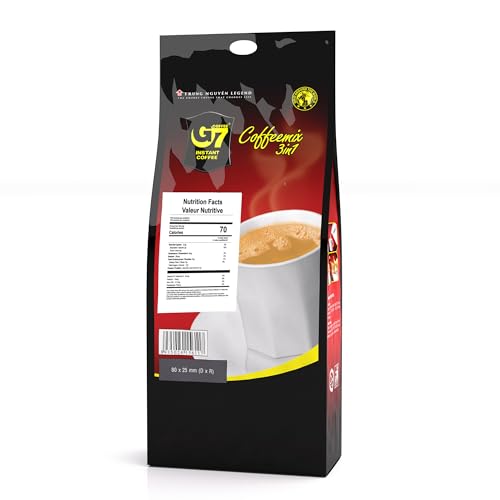 Trung Nguyen G7 Instant Coffee - 3-in-1 with NANO+ Technology, Roasted Ground Blend, Non-dairy Creamer & Sugar (100 Sticks)