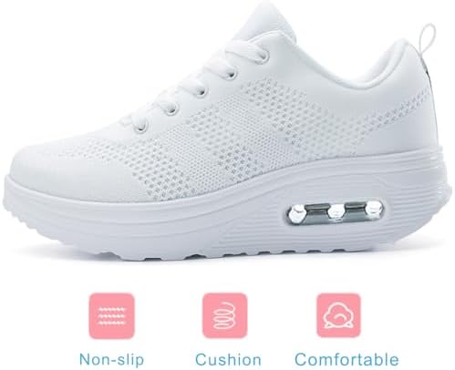 RUIDENG Platform Sneakers for Women Air Cushion Walking Shoes Women Comfortable All Day Thick Rocker Bottom