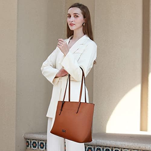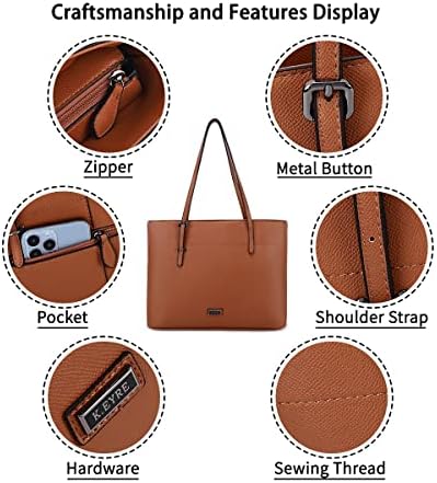 【K.EYER Brand Design】This tote bag is designed with a concept that one multiple functional purse fits all people at any age for every occasion, causal or professional; business meeting or vacations. 【Great Gift Choice】More than 15 different color options to choose. Perfect gift for all age, wife, friends, mom on any significant moments like anniversary, birthday, ect. Classic design suitable for any style clothing on any occasions, causal or professional. 【Organized & Large Capacity】Two center main compartments separated by one large zipper pocket, one small zip pocket, two slot pockets, and one zip back pocket. High capacity with lots of pockets, keep all your stuff organized. Approx. 15''L*10.2''H*3.9''W 【High Quality Material】Top zipper closure decorated with asymmetric buckle hardware --adjustable shoulder straps. Make of vegan material with textile lining, durable and easy wipe clean. 【Reinforced Shoulder Straps】 The 2cm-wide folding stitching design thickens straps to hold up better, won't dig into your shoulders while carrying heavy stuffs, increasing their durability and comfort.