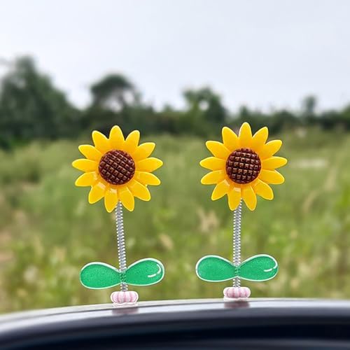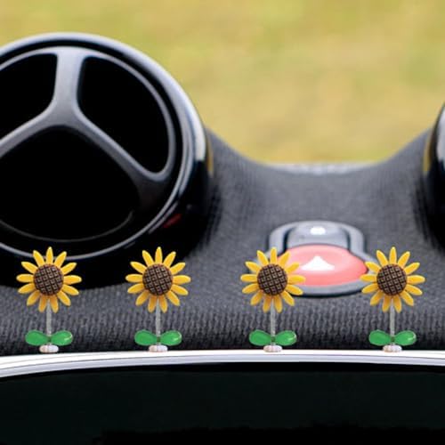 ZOSTLAND Sunny Dashboard Decorations - Cartoon Ornaments, Cute Flower Decorations, Funny Desk Ornament, (4pcs Sunflower) for Car, SUV, Living Room, Bedroom, Desk