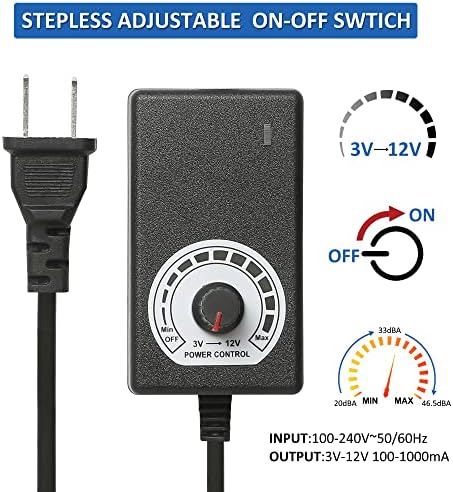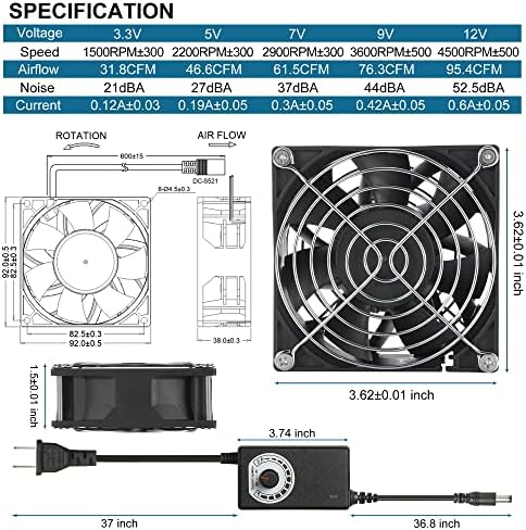 12V 92mmx38mm 90mm Moisture-Proof Small Computer Muffin Exhaust Vent Fan with 110V 120V 220V AC Powered Speed Controller 3.3V-12V 1500-4500RPM Variable Speed