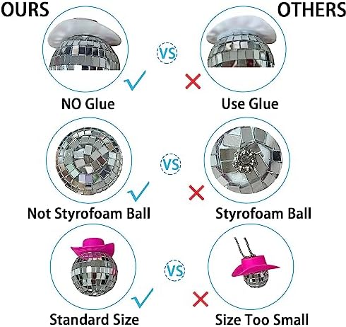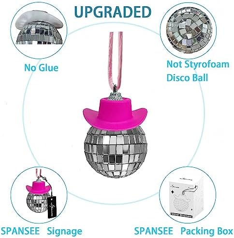 SPANSEE Pink Disco Ball Car Ornament, Mirror Ornament, Cowboy Hat Accessory, Cute Disco Ball Charm Accessories