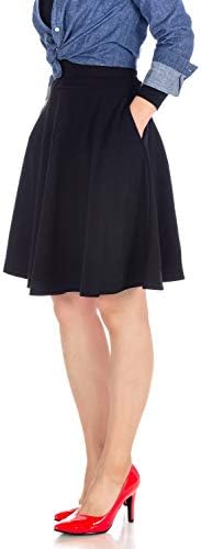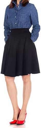 Dani\u006#9; S Choice high waisted cotton blend skirt with pocket and knee length A-line horn, suitable for both business and casual wear