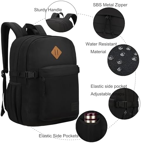 SUPACOOL Black Backpack For School, Bookbag for Boys, Girls and Kids, Boys backpacks, Laptop Compartment,Travel Backpack for Men and Women(Black)