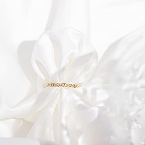 PAVOI 14K Gold Plated Cubic Zirconia Band Round Milgrain Eternity Bands Gold Rings for Women