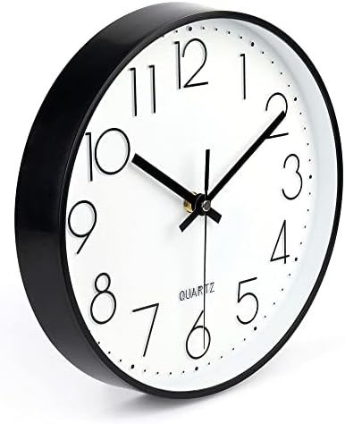 jomparis 10 Inch Black Wall Clock Battery Operated Silent & Non-Ticking Wall Clock Classic Clock for Home, Office, Bedroom, School