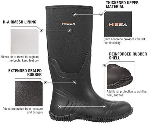 HISEA Men's Rain Boots, Waterproof Durable Insulated Rubber Boots for Men, 5 mm Neoprene Outdoor Mud Fishing Hunting Boots for Multi-Season (Black, Camo & Brown)