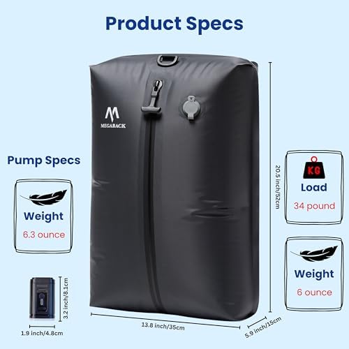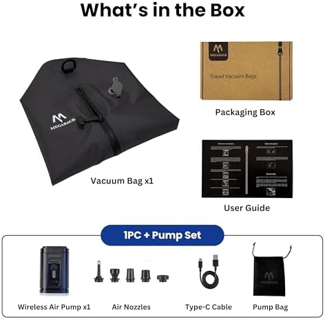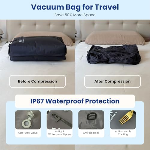 Megaback Vacuum Bags for Travel, IP67 Reusable Vacuum Seal Bags for Clothing with Electric Pump, Vacuum Seal Packing cube for Suitcases, Backpack & Travel (1PC+Pump)