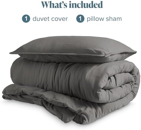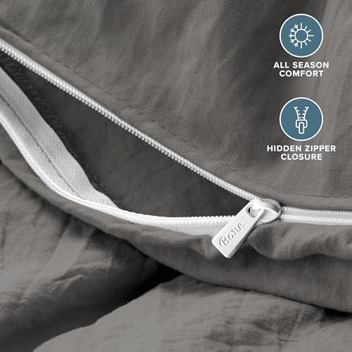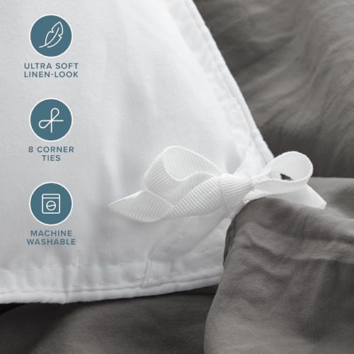 Bare Home Ultra Soft Washed Microfiber Duvet Cover with Zipper and Securing Ties, Linen-Like Look, Easy Care, Hypoallergenic (Twin\/Twin XL, Grey) with 1 Std. Pillow Sham