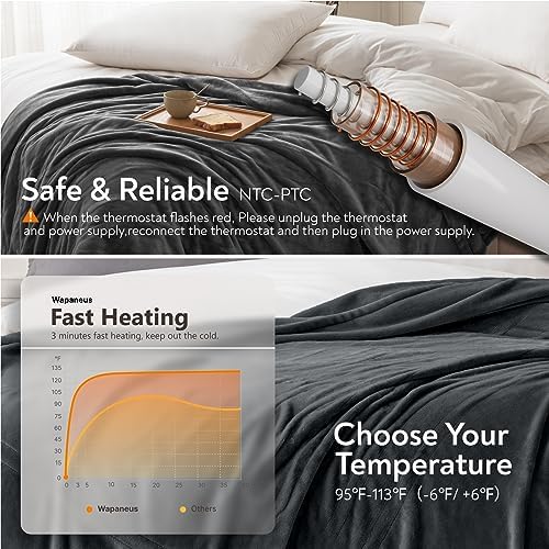 Wapane foot bag heating blanket electric blanket with 0 heating levels and automatic shut-off function, flannel quick heating cover blanket 7cm x 5.4cm, machine washable, dark gray