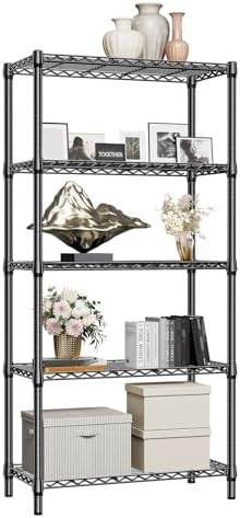 M MZG 1250 lbs 5 Tier Shelf Metal Storage Shelves Shelving Wire Rack Heavy Duty Closet Organizers for Garage Kitchen Bathroom Laundry Black 13.8" D x 35.4" W x 68.5" H