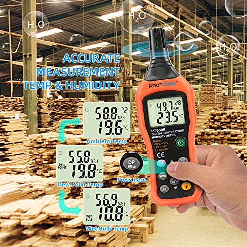 Protmex PT6508 Temperature Humidity Meter, Digital Thermometer Hygrometer Monitor with Ambient, Dew Point, Wet Bulb for Indoor\/Outdoor MIN, MAX, Data Hold, LCD Backlight