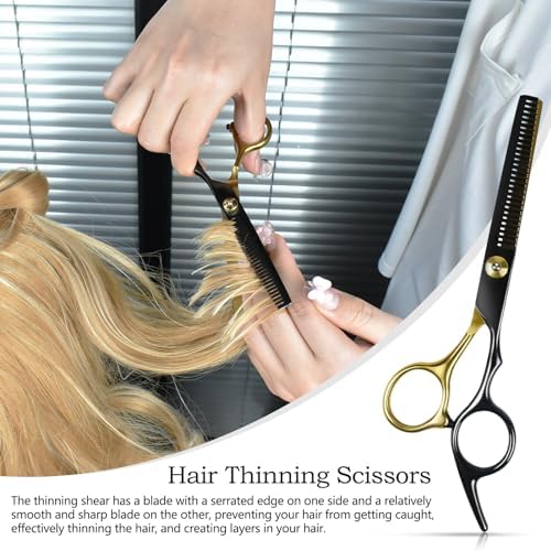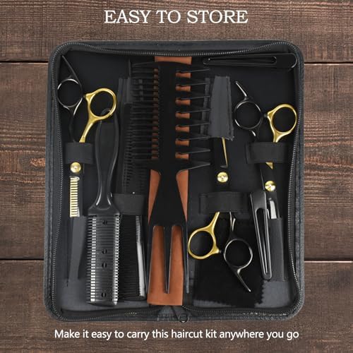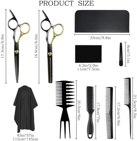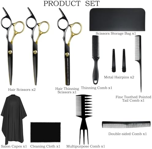 Niura 12 PCS Hair Cutting Scissors Set - Professional Barbers & Salon Kit: Cutting & Thinning Scissors, Comb, Cape, Clips for Men, Women, Kids & Pet