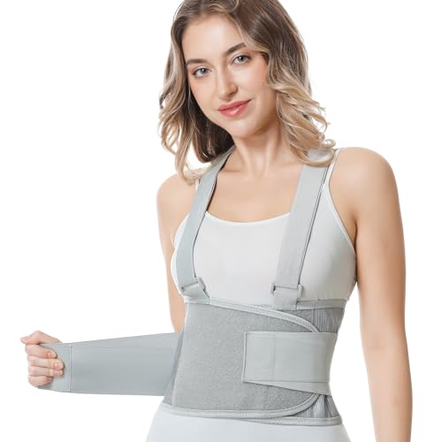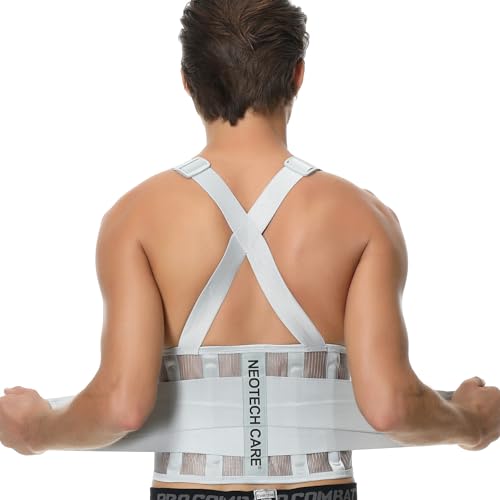 NeoTech Care Back Brace with Suspenders\/Shoulder Straps - Light & Breathable - Lumbar Support Belt for Lower Back Pain - Posture, Work, Gym - Grey Color (Size XL)