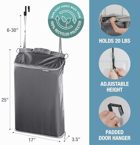 CleverMade Convertible Laundry Hamper Bag - Shadow Gray Stone holds 21.5L \/ 20 lbs 1 Compartment - Storage with Handles for Home Organization