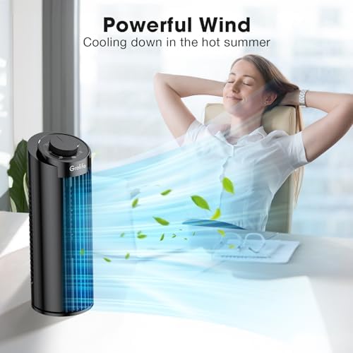 Grelife tower fan, 70 ° swing fan, 3-speed, fast cooling, silent operation, portable bladeless fan, 13 inch (approximately 33.0 cm) desktop tower fan, suitable for bedrooms, homes, offices, and deskto