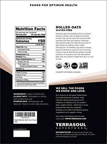 Terrasoul Superfoods Organic Rolled Oats, 2.5 lbs - Gluten-Free Old-Fashioned Whole Grain\u2026