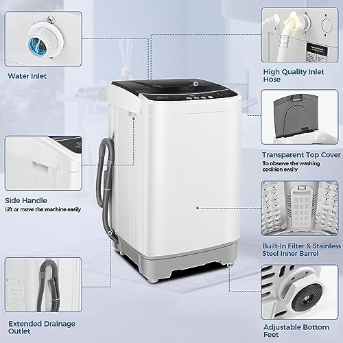 Nictemaw Portable Washing Machine, 20Lbs Capacity Full-Automatic Portable Washer, 2.8Cu.ft Washer and Dryer Combo with Drain Pump, 10 Programs & 8 Water Levels for Apartment, Dorms, RV