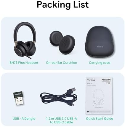 Yealink BH76 Plus UC Wireless Headset for Work, Bluetooth Headsets with Microphone Active Noise Cancelling, Retractable Mic Arm, ANC Business Headsets for Teams Zoom Meeting Call, Switchable Earpads