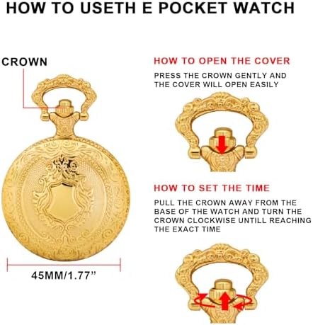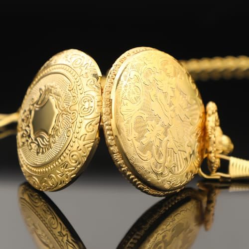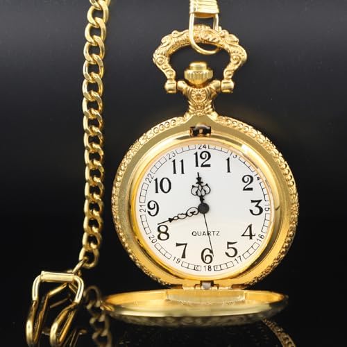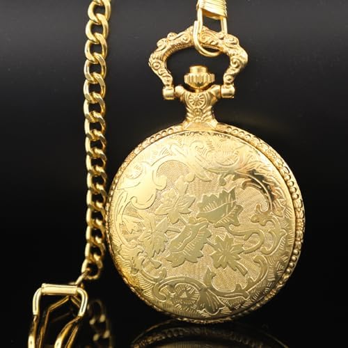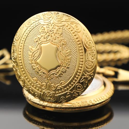 Realpoo Gold Shield Men's Pocket Watch, Arabic Numeral Digital Scale Men's Quartz Pocket Watch, Quartz Pocket Watches with Chain-Gold