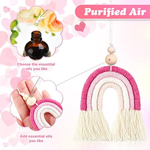 Frienda 3 Pieces Boho Rainbow Car Charm Essential Oil Diffusers for Car Cute Air Fresheners Handmade Hanging Accessories Decor(Classic Style)