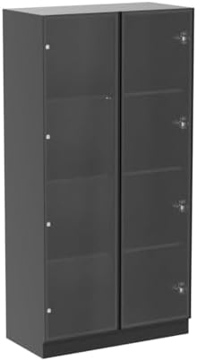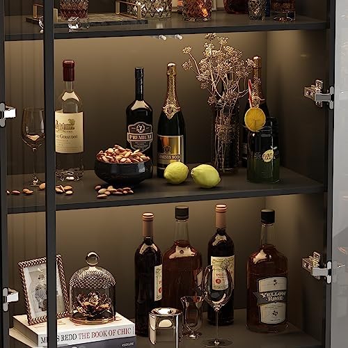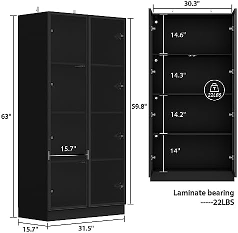 Homsee Bookcase Bookshelf with 4-Tier Shelves, 2 Glass Doors and LED Lights, Wooden Display Storage Cabinet for Home Office, Living Room, Black (31.5\u201DW x 15.7\u201DD x 63\u201DH)
