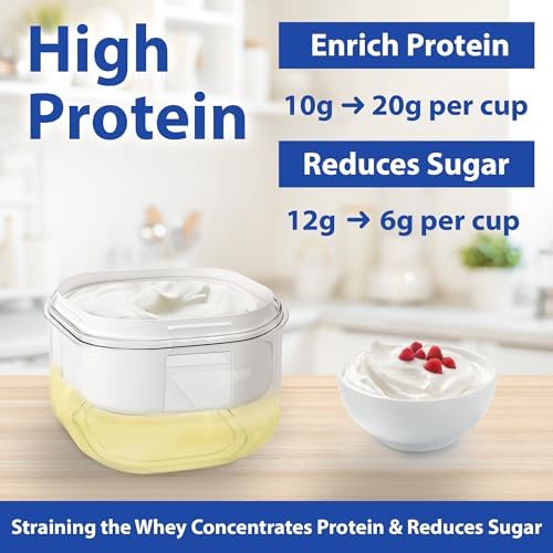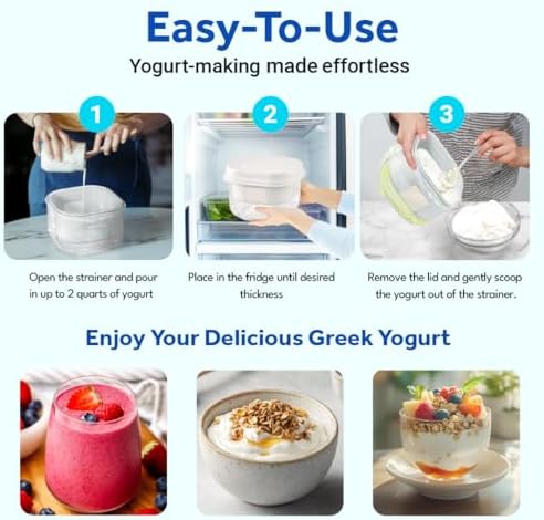 Ultimate Greek Yogurt Strainer - Make Delicious Homemade Yogurt with MORE PROTEIN AND LESS SUGAR - Fine Mesh Nylon Greek Yogurt Maker - 100% BPA Free & Dishwasher Safe with Large 2.3 Quart Capacit