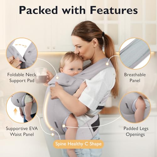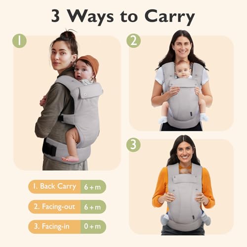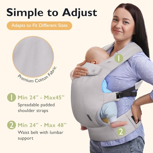 mommore Baby Carrier Newborn to Toddler, Ergonomic Baby Infant Carrier with Lumbar Support, Comfort with Adjustable Head Support, Easy to Put On, with Storage Bag