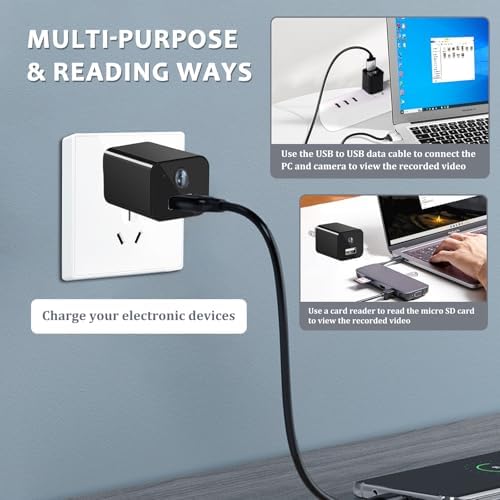 Nanny Cam USB Charger Camera 1080P HD Security Mini Cameras with Motion Detection, Wall Charger Camera for Home Office No WiFi Needed No Audio