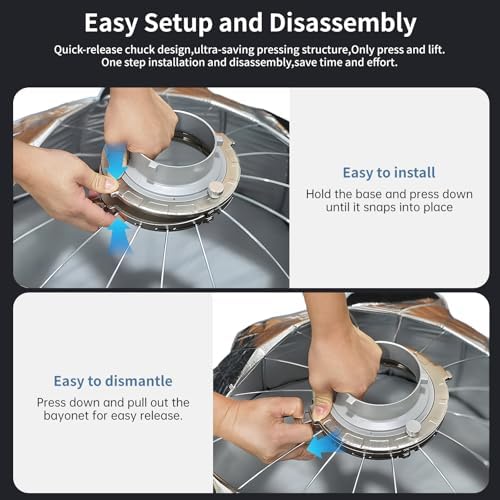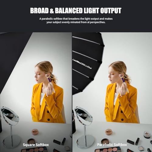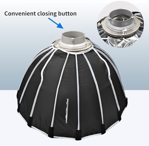 23.6inch\/60cm Parabolic Softbox Bowens Mount with Honeycomb Grid,Diffusers,Bullion Tablet,Quick Set-up Release Foldable Softbox for Strobe Flash Studio Photography and Other Bowens Mount Lights
