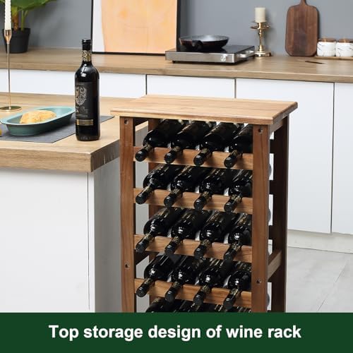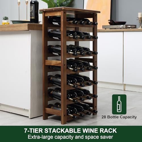 everous Wooden Wine Rack, 7 Tire Floor Wine Storage Rack, 28 Bottles Holder, Free Standing Display Rack for Kitchen, Pantry, Cellar, Natural Free Standing Floor Wine Rack