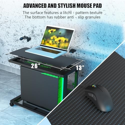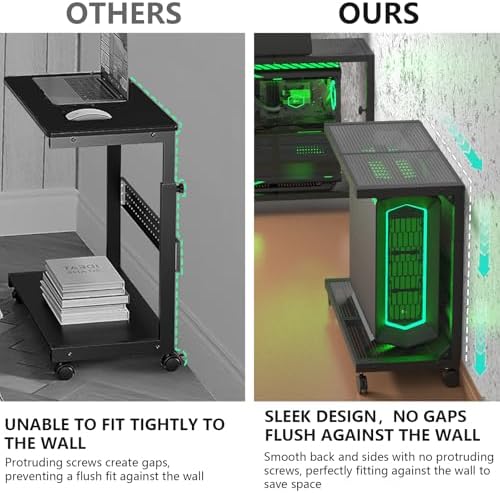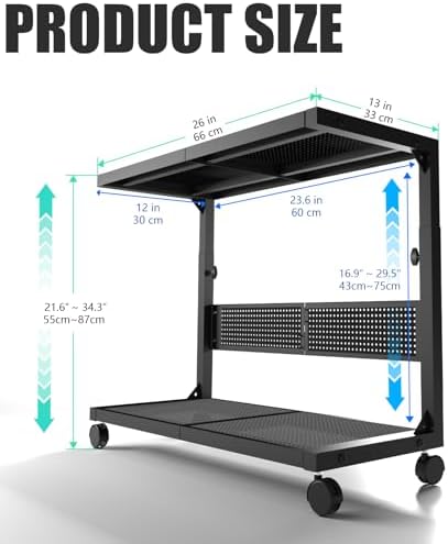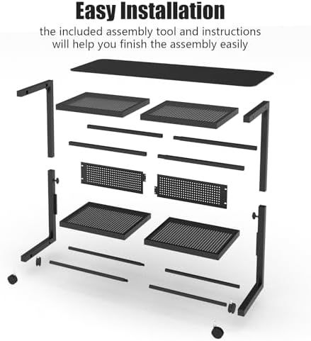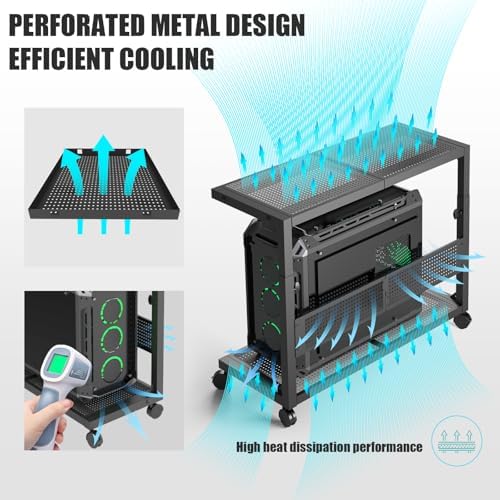 Moricher Computer Tower Stand - Height Adjustable 2-Tier ATX-Case PC Stand Printer Rack Pegboard with Rolling Wheels & Mousepad for Home Office Gaming Accessories