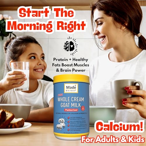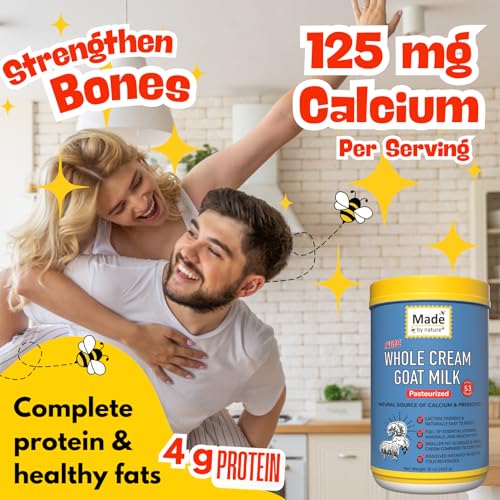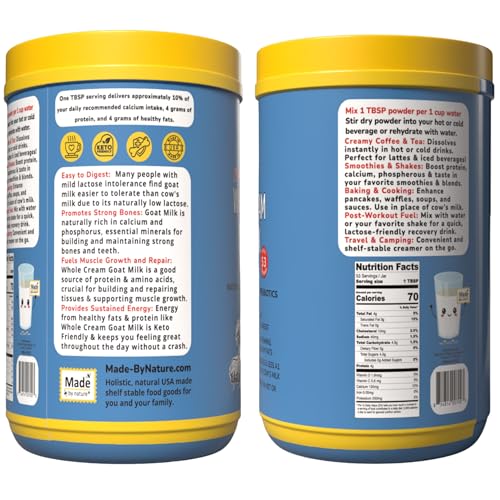 Made by Nature Pure Whole Cream Goat Milk Powder - 16 oz - Lactose Friendly, Easy Digestion, Calcium, Prebiotics, Essential Nutrients, healthy instant creamer, baking, 53 servings