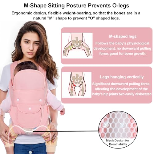 4-in-1 Baby Carrier Newborn to Toddler, Infant Carrier Ergonomic Adjustable Holder Portable Convertible Front and Back Backpack Carry for Infants Toddlers Babies 7-45 Pounds (Pink)