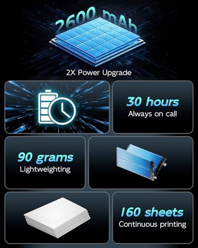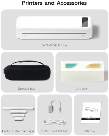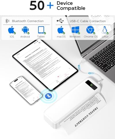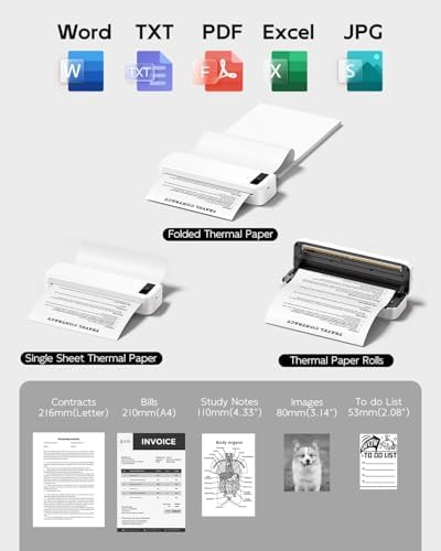 Inkless Portable Printer for Travel, Wireless Thermal Printer for Phone Laptop, Support 8.5" X 11" US Letter & A4 Size, Small Bluetooth Mobile Printers with Carry Case and 4 Rolls of Therm