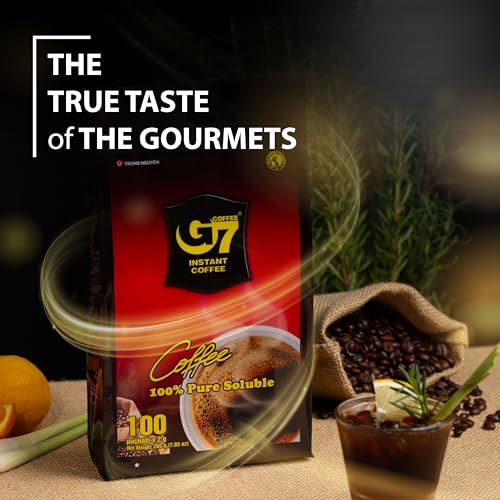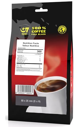 TRUNG NGUYEN G7 PURE BLACK Instant Coffee for Energy Boost - 100% Soluble Coffee Without Sugar - Strong, Pure & Rich Vietnamese Instant Energy - Original Taste for Connoiseurs (100 Sachets\/Bag)