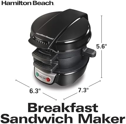 Hamilton Beach Breakfast Sandwich Maker with Egg Cooker Ring, Customize Ingredients, Perfect for English Muffins, Croissants, Mini Waffles, Perfect White Elephant Gifts, Black (25477)