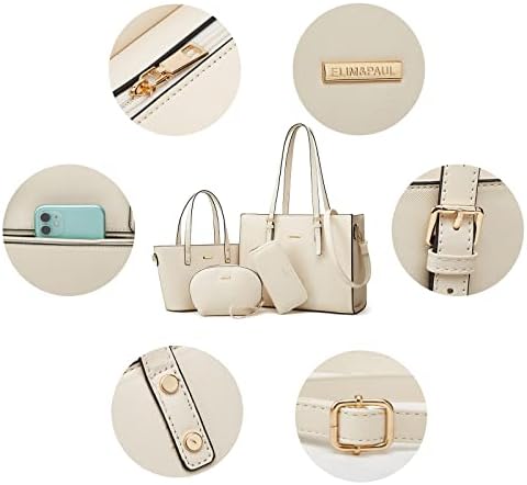 Women Fashion Synthetic Leather Handbags Tote Bag Shoulder Bag Top Handle Satchel Purse Set 4pcs