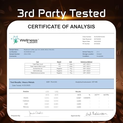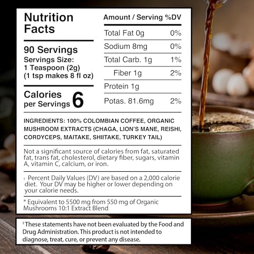 Mushroom Coffee, 90 Servings Organic Mushrooms Instant Coffea, Great Tasting Colombian Keto Coffee, 7 Superfood Mishrooms Lions Mane, Chaga, Reishi, Cordyceps, Maitake, Shiitake, and Turkey Tail