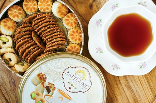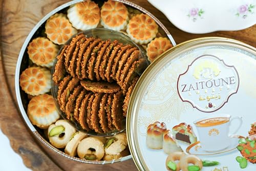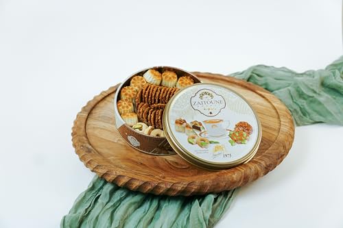 Zaitoune Premium Mini Mixed Cookies - 9 oz Bite-Sized Date Maamoul, Barazek & Ghraybeh Cookie Mix Handcrafted in Turkey Beautiful Reusable Gift Tin Perfect with Tea Great Sharing Present